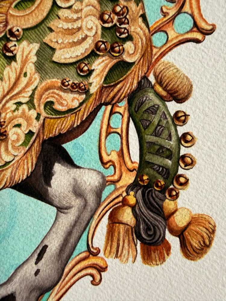 Myriad bells, hand embrodered golden thread, tassels and velvet. Opulence seldom rivaled. Based on an existant object in the Carriage Museum collection in Vienna.