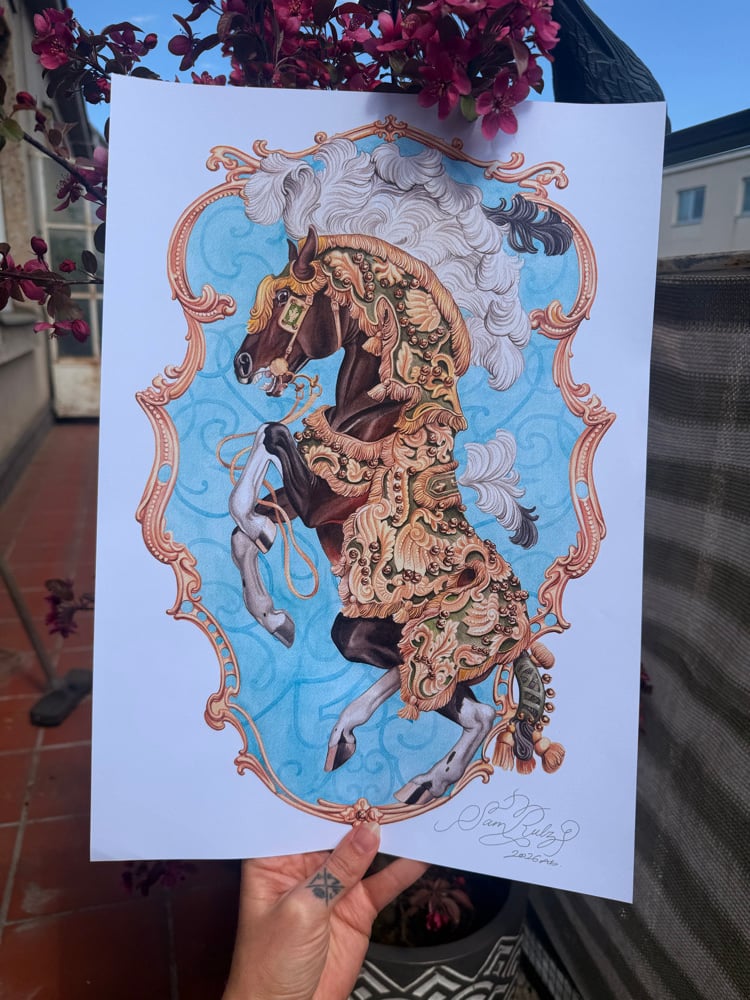 Highest quality giclee A3 print(420 x 297 mm), 290 gsm Acid free 100% cotton rag, archive quality. Also available in an epic A2 size (420 x 594 mm).
